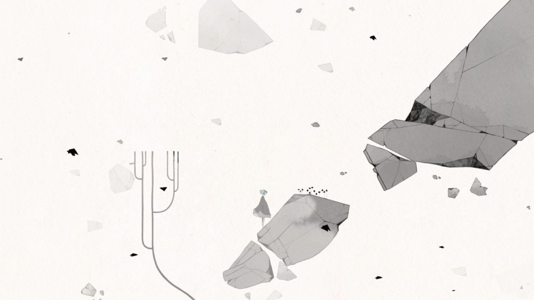 “接受”阶段在游戏里呈现无生机的白色,这一阶段中Gris被拉回苍白的环境中。“接受”阶段下,对象的情绪会趋于稳定,能带着之前的生活变故继续生活。举例,“接受”阶段指的并不是“我丈夫死了我无所谓”,而是“我丈夫死了,但我会没事的。”这个阶段同样也是调整生活重回正轨的阶段。在游戏中,Gris重新将破碎母亲拼凑成形,宁静温和的色彩重新出现。最后Gris走入星辰里,消失在云端中,游戏结束。也许就象征着Gris走出悲伤的阴影,在生活中继续前进。