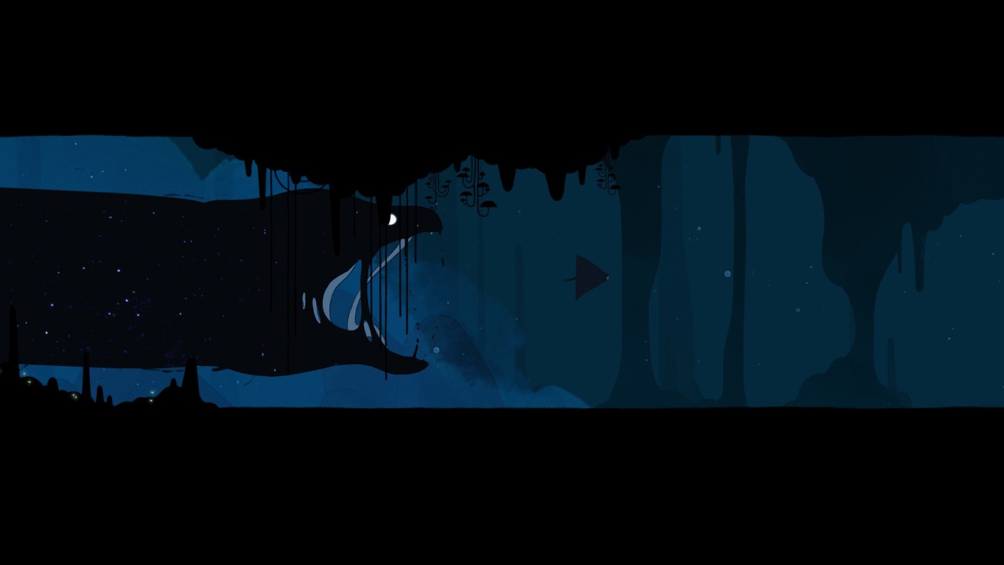 第三阶段叫Bargaining,上文中我将其意译为“挣扎”,这个单词原意有“讨价还价”的意思,可以理解为心理上的挣扎。“挣扎”阶段在Gris中以蓝色为色调出现,且有大量与水有关的元素。相比于前两章节的“拒绝”和“愤怒”章节,“挣扎”章节要安静一些(尽管“挣扎”这个词听上去不是那么安静)。该阶段中出现了试图吞噬Gris的大鱼,可能象征了Gris的愧疚。愧疚是“挣扎”阶段的主要附属品,如上文所说,讨价还价在这里可以理解为一种“如果.....”的想法。例如,“如果我走心学习就不会申不上好大学”,“如果我早出门五分钟事故就不会发生”,“我愿意用我这条命换回我的丈夫”等等。对象会说服自己通过谈判的方式,以生活中的巨大变化为让步,回到悲伤阶段摧毁正常生活之前·。Gris该章节中出现了一只海龟,帮助Gris从大鱼的追逐中脱身,将Gris带到了下一阶段:Depression。
