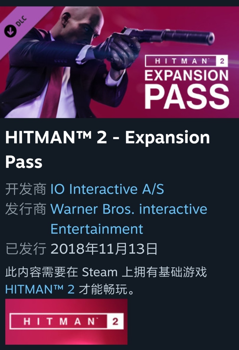 这个叫Expansion Pass的东西就是季票,是2代游戏的后续内容。针对于购买了杀手2代标准版的hxd(像我这种)。里面的内容含有4张地图(两张主线两张狙击手),内容丰富,强力推荐已经拥有标准版的hxd入手。如果有hxd买的是黄金版,那就不需要再买这个季票了。