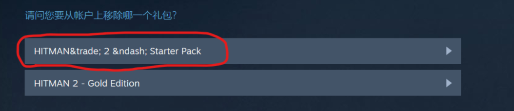 小黑盒里无法正常购买或者不掉落卡牌的hxd把画圈的礼包移除掉就行了(千万别移除错礼包了嗷)(该图源自steam社区HITMAN™2指南,作者Roboac,因为我已经移除过了,所以在此借用图片)