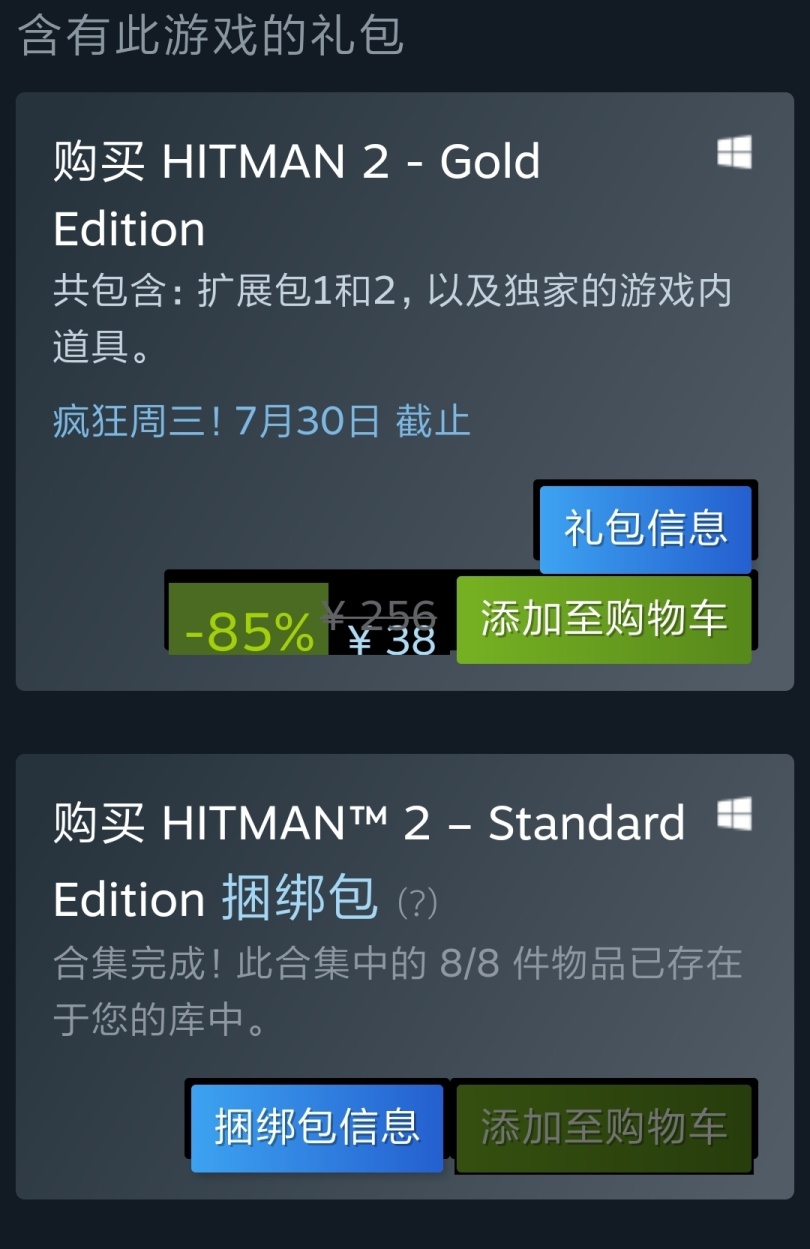 首先,HITMAN™2目前有两个版本,标准版和黄金版。(可以白嫖的Starter Pack体验版我们后面再说)