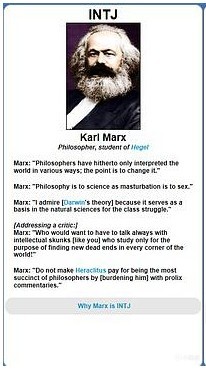 相比于Ti(内倾思考)更注重内在逻辑体系的和谐自洽,Te(外倾思考)更在意实用性与客观实际,更倾向于解决实际问题——如根据大量社会调查所出版的《资本论》,对社会主义革命具有巨大的指导意义。