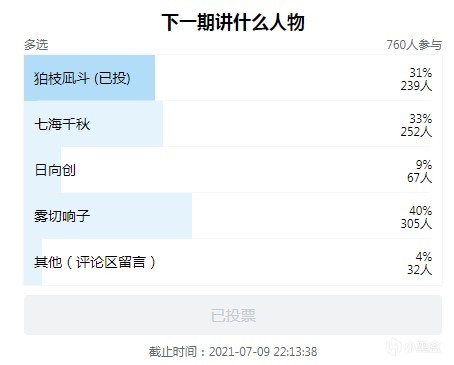 与此同时,我展开了投票来决定这一期要分析的人物,恭喜雾切响子以305票竞选成功!