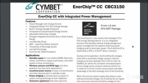 然后他就找到了一款薄膜全固态电池CBC3150。虽然很稀罕,但是它会流失的电流很低,又小又方便,简直是作为辅助电容的绝配。