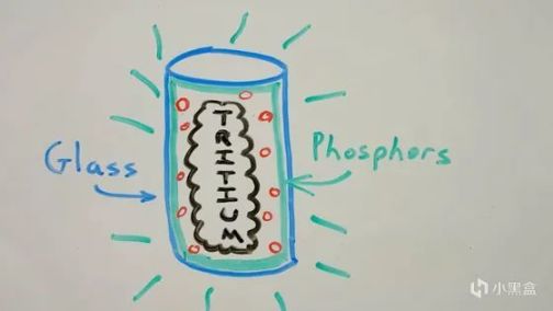 氚不断发出微弱的β射线。当这种氚被封装在内部涂有磷光物质的玻璃管中时,它就变成了一直发光的氚管。弱β射线无法穿透氚管的玻璃,因此安全性很高,一般是用于钟面和钓具等各种场合,但是连上一个光电转换器后就可以转化成电能。