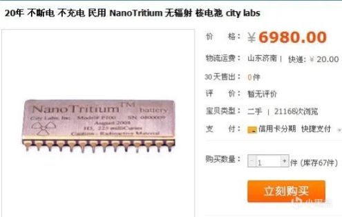 其实以氚作为放射源的自制同位素电池早已不是什么新鲜的事。相关的民用专业产品也有不少,比如City Labs公司出品 NanoTritium同位素核电池早年都能直接在电商平台上买到,一手12000,二手6980的图不知道水了了多少年。