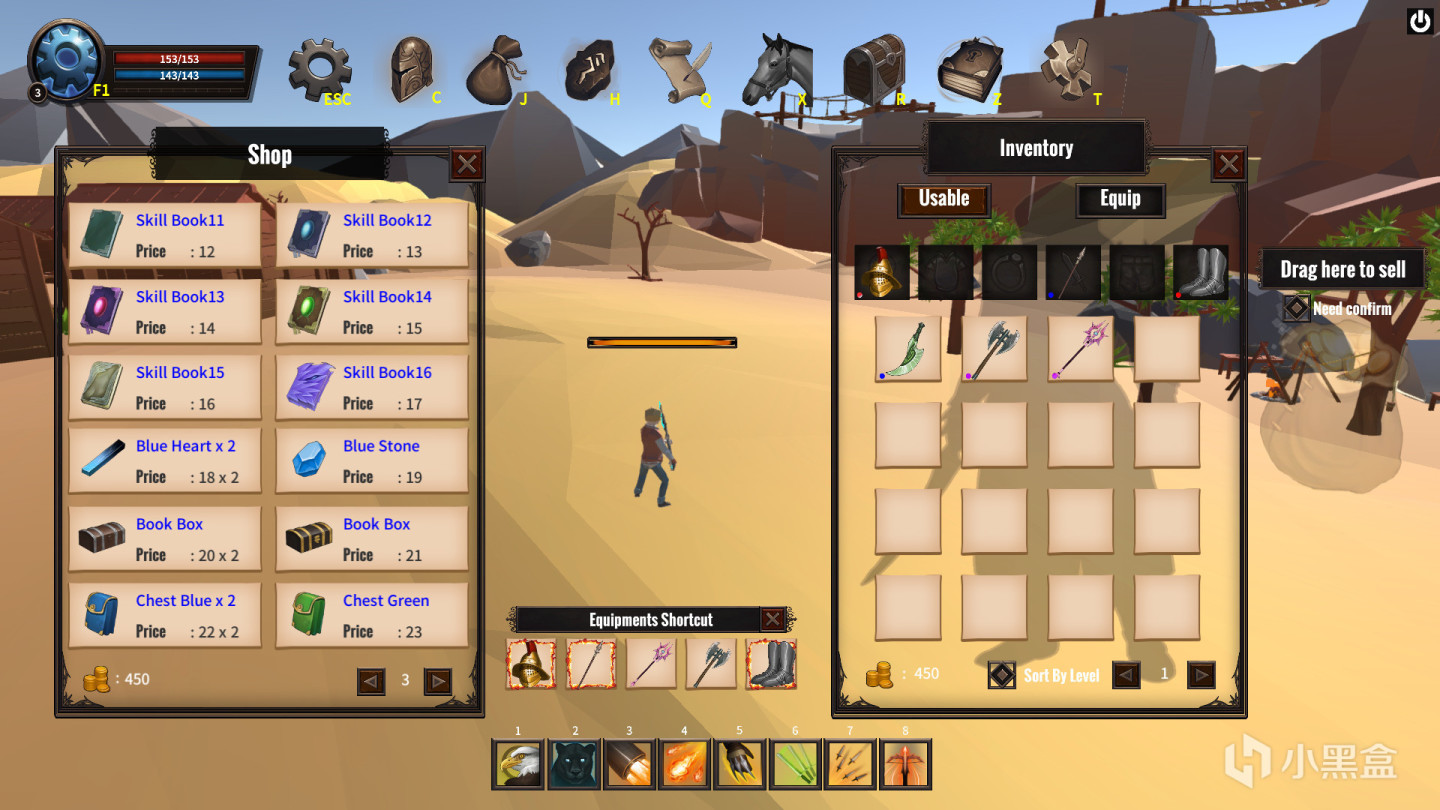 - 装备栏完善,从头到脚的武器、防具应有尽有,而且获取方式简单,击杀的所以怪都会爆对应等级的箱子,箱子会随机开出一件物品,其中大部分是武器和防具。
