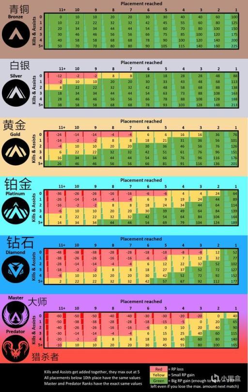 我们依据前面的图标可以得出,想上分得依靠高排名和高表现,才能上分。最少也要前10,其次是要有一定的击杀分,才能保证不扣分。因此,如果你决定今天要上大分了,那么你就要想办法先保证自己能进入前十的同时,能够拿到几个人头分,尤其是已经身处白金和钻石等容易掉分的分段。