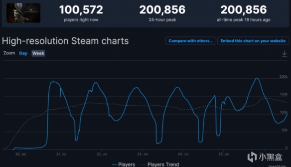 本次封闭测试截止写文日期,根据SteamDB的数据,最高在线人数于上周末到达20万仅次于Dota2和CSGO之下位居第三,每日的在线人数也维持在16W上下,同时登顶Steam周销量排行榜(7/19-7/28)基础版和豪华版分别位居第一和第二和SteamDB热门游戏排行榜榜首,并且在SteamDB最受欢迎的游戏中也位居第七。