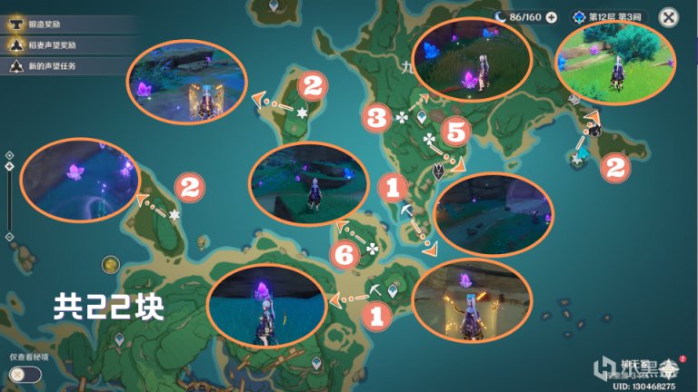本路线共计140个【紫晶块】,因为会有那种随机的“富矿点”,所以这个数量是所浮动的!