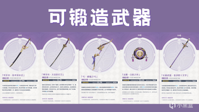 目前稻妻新可锻造的四星武器有5把,都可以通过达成一定条件获取武器图纸,而【紫晶块】就是稻妻武器的锻造材料之一了。