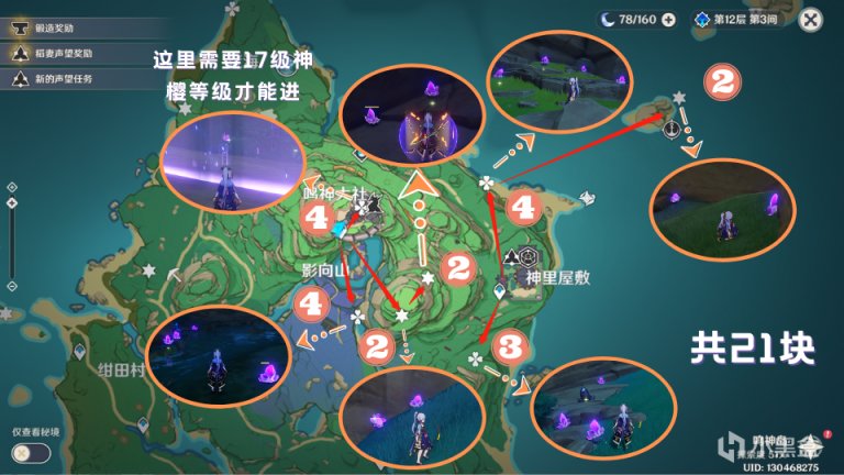 鸣神大社下面(半山腰)那个点位,需要中阶雷种子,17级以上的神樱等级才能进入屏障。
