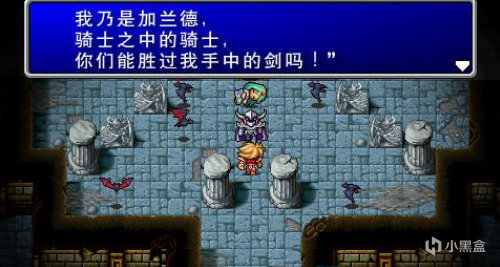 ·《最终幻想1》对阵被背叛的骑士加兰德截图,加兰德可能是上世纪最具有悲剧色彩的boss之一,原本忠心耿耿,但却遭受背叛,至死也未想到自己会被自诩为“光之四战士”的主角团所消灭。