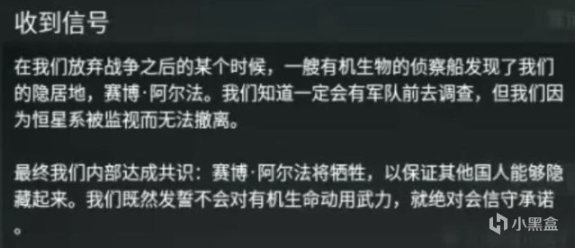 赛博勒克斯在发现有机体舰队正向自己驶来的时候,为了能够在不伤害有机体的情况下自保,一批人民自愿留在赛博勒克斯α的环世界中充当诱饵,以此换来赛博勒克斯β的安全转移,在转移之后,赛博勒克斯β便隐匿在一个隐藏了信标航路的星系中,打算永不干涉星海的格局。