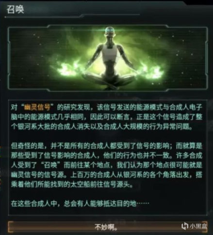 我不知道体味过“赛博勒克斯”的《群星》事件链的玩家有何种体会,但就从个人的角度来看,这个故事,有着一股浓浓的“应召而降世的英雄”味道。当然,虽然我们可以简单地用歌剧中常用到的“机械降神”手法来解释,但这种解释又不是非常得契合“赛博勒克斯事件链”。因为《群星》后期那全星海面对的终末危机对于赛博勒克斯的寥寥舰队来说太过于庞大,只要开局设置中的终末危机强度大于3.0,便可以下定结论地说:赛博勒克斯的舰队支援对于肃正协议的无情铁骑就是在螳臂当车。