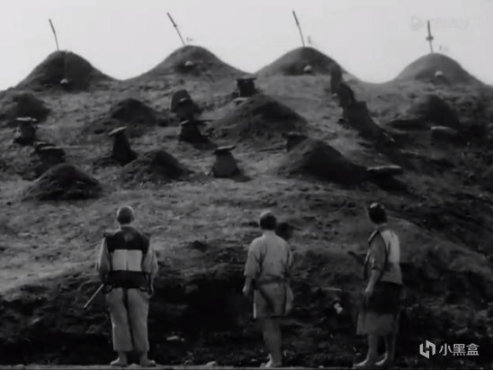 ·《七武士》剧照,四把弯刀便是四位牺牲的武士