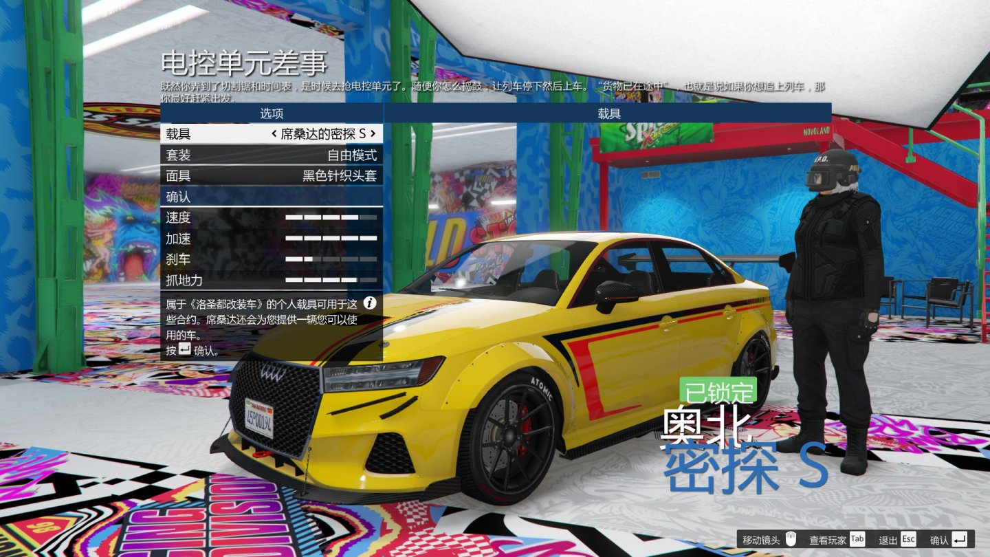 在开启合约的最终劫案时,系统会锁定我们只能用“洛圣都改装车”更新的车辆。