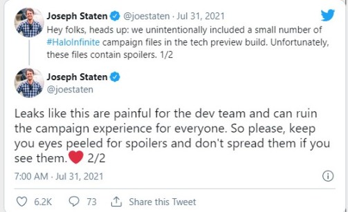 接着上面的话题来说,因为技术测试除了官方直播以外还提供给了少量的PC和Xbox玩家,其中一些数据挖掘者对游戏数据进行了深度挖掘并发现这个技术测试版本包含了接下来343工作室可能会公布的活动内容细节。为此,工作室的创意负责人发推提醒玩家注意剧透,如果看到了也请不要传播。