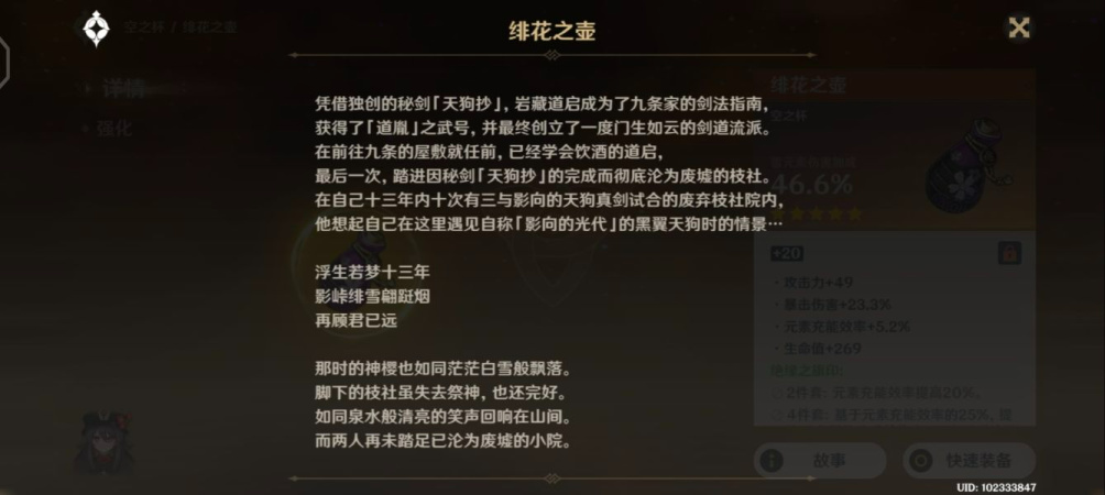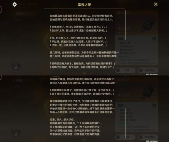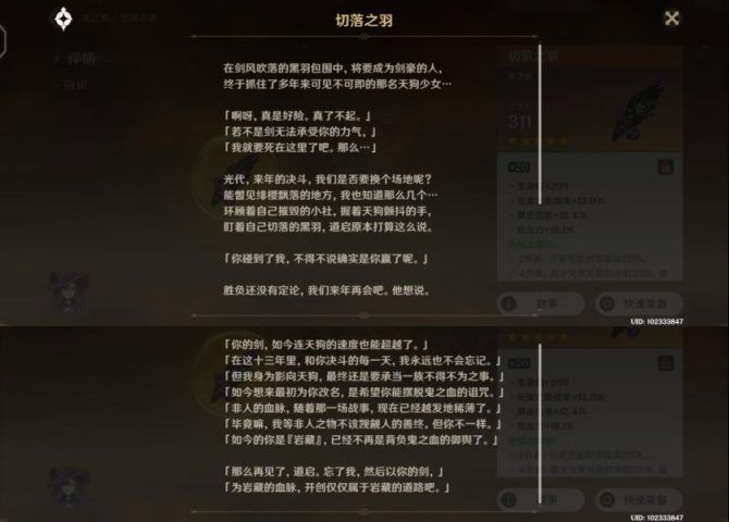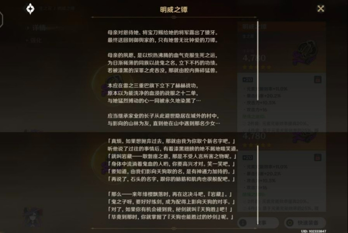 整个剧情也没有什么特别隐秘的东西,岩藏流的宗主为了贯彻雷神的「眼狩令」从而上交了自己的神之眼,因此失去了部分记忆与秘剑的心得,而岩藏流的其他人不同意宗主的做法,纷纷离开,而旅行者在稻妻的途中遇到了这些岩藏流的门人,将他们一一击杀。