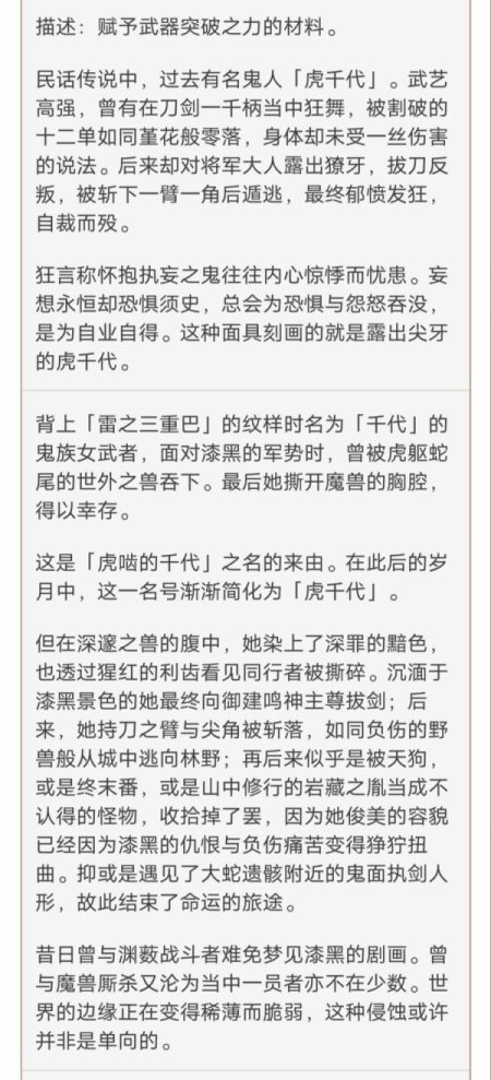 关于御與千代的故事,在武器突破材料「今昔剧画」系列素材中有提到。