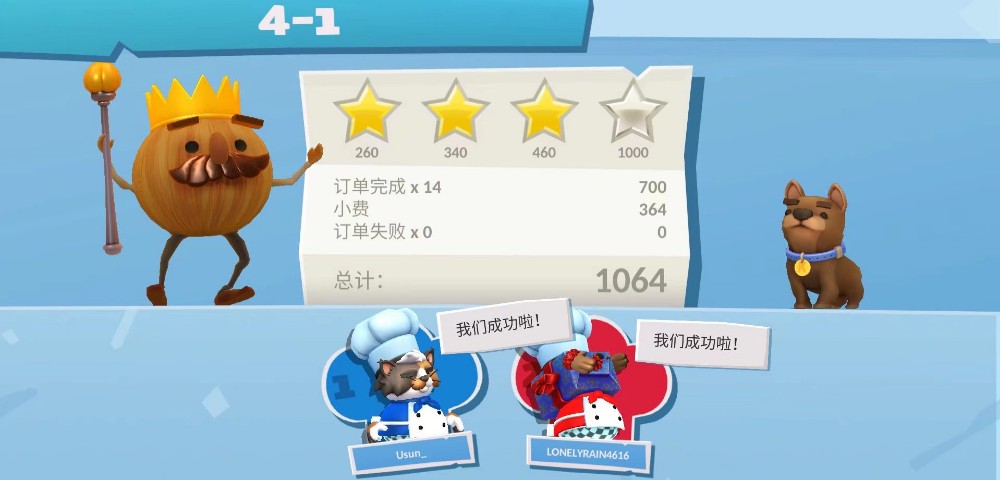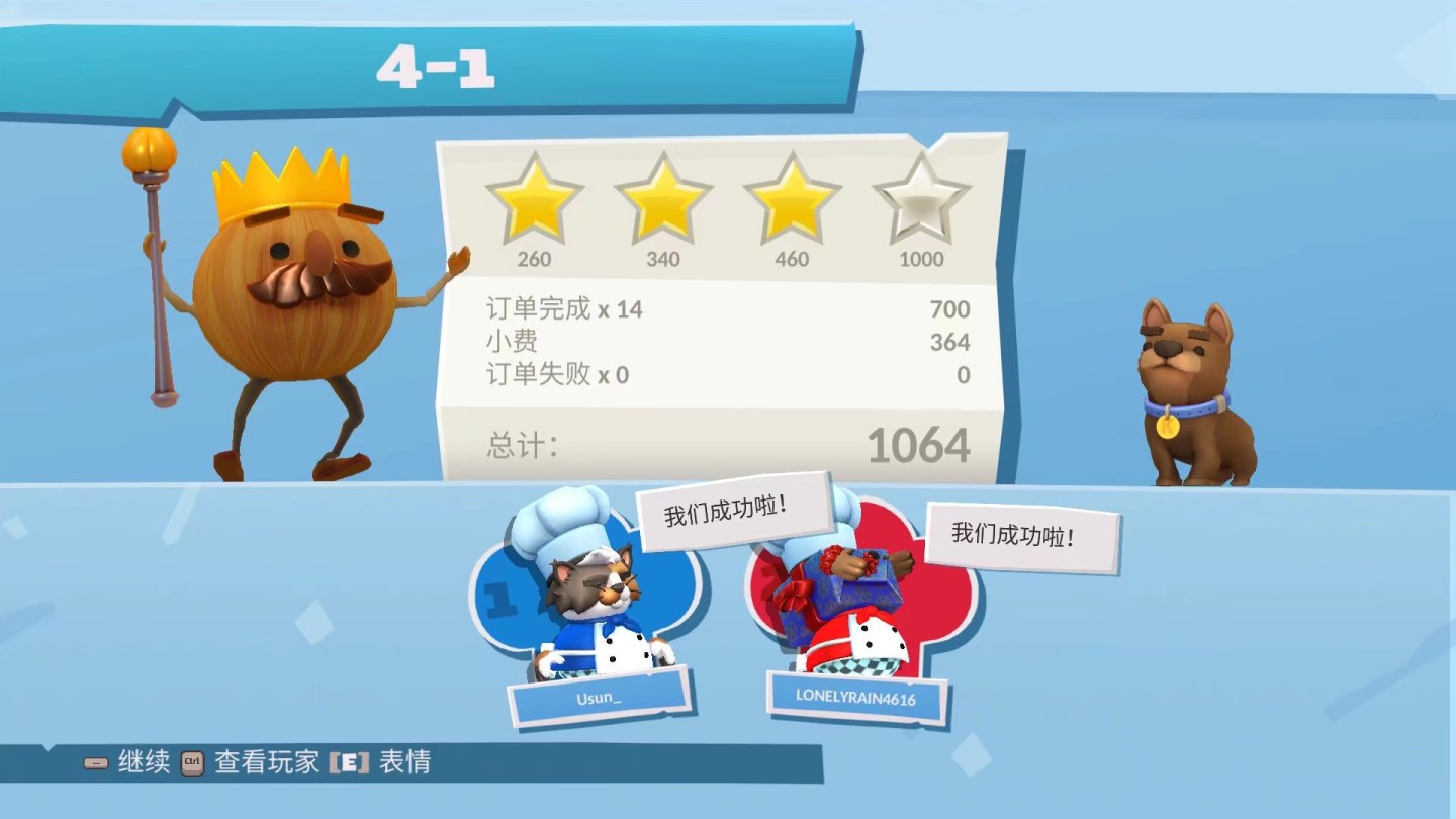 认识对象之前,和一个朋友一起打胡闹厨房,结果打了几关就卡关了,之后游戏就去库里吃灰,直到我和Rain双人开黑,把这个游戏又从库里面翻了出来。