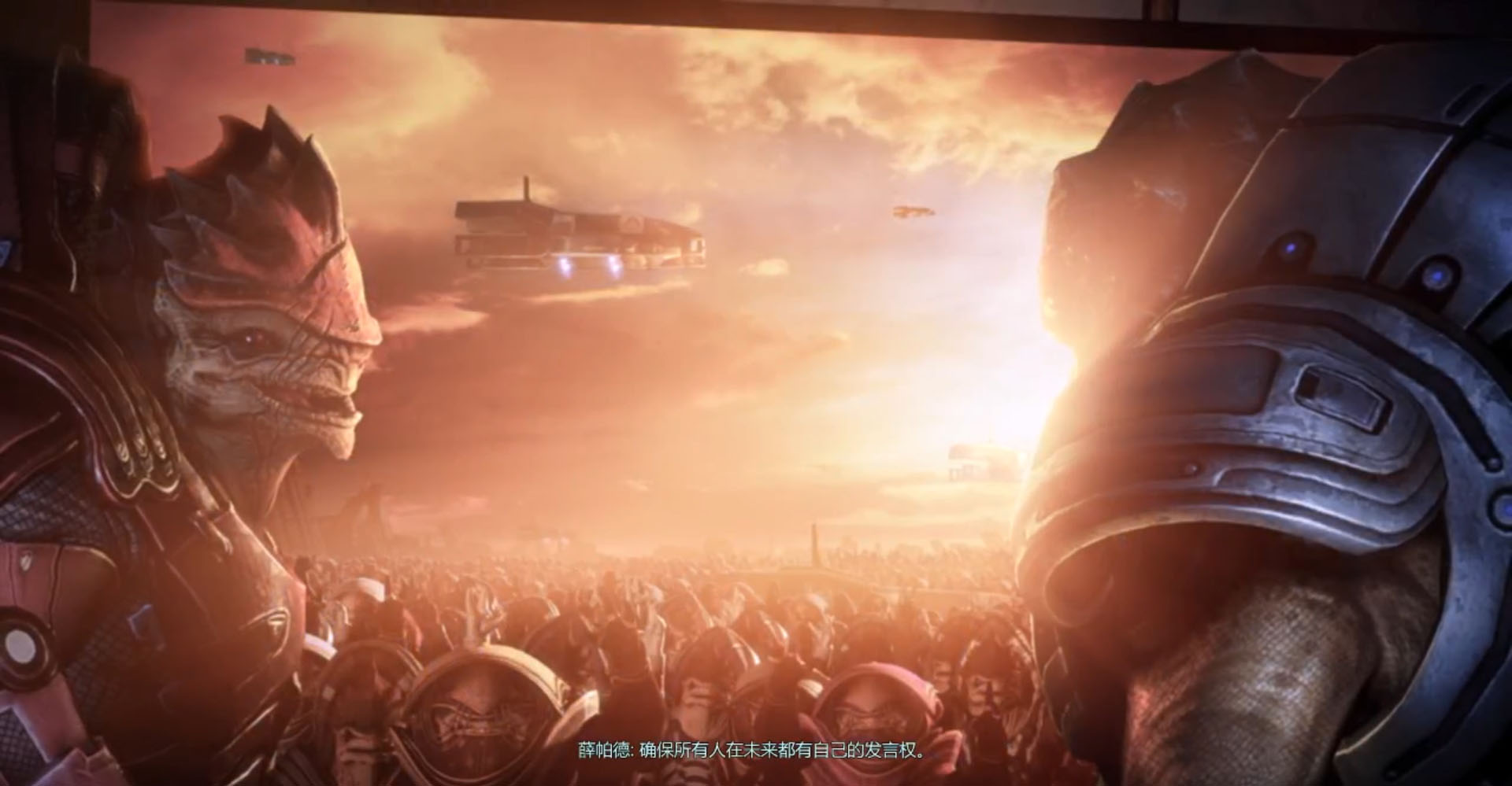 这恐怕是克洛根人能够给予一个外星人的最高赞誉与荣耀了吧。这时收割者步兵杀来,莱克斯让薛帕德先走,自己独自一人杀入敌阵,为他们断后。他高喊着: