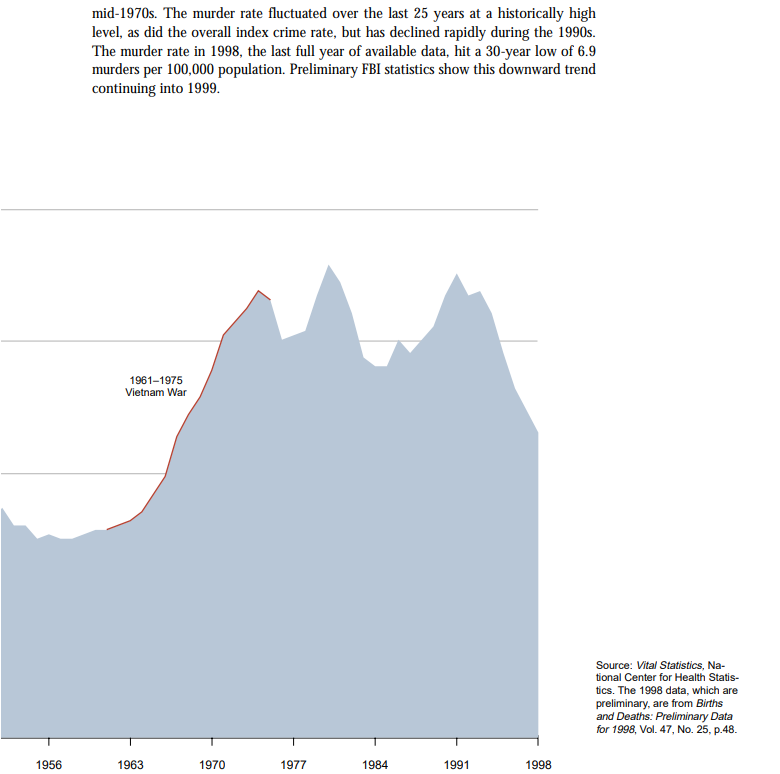 越战的失败直接引发了美国60年代到80年代犯罪率、谋杀率、缉毒率等跟恶性事件有关的指标的飙升,根据美国联邦调查局的报告,这些指标在这二十年的岁月变迁中都处于快速爬升的趋势。其中犯罪率这个最为关键的指标正好在1980年到达了顶峰。连环杀手、黑手党、街头黑帮与犯罪、随处可见的瘾君子是七八十年代的美国人对当时美国治安的普遍印象。