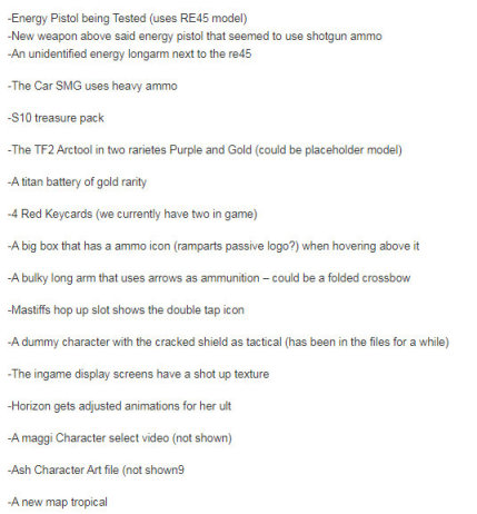 14.《APEX英雄》第十赛季内容意外流出,此次的内容流出为重生工作室工作人员爆料,由外媒MP1ST披露,可信度比较高,但不能保证百分百真实可信。