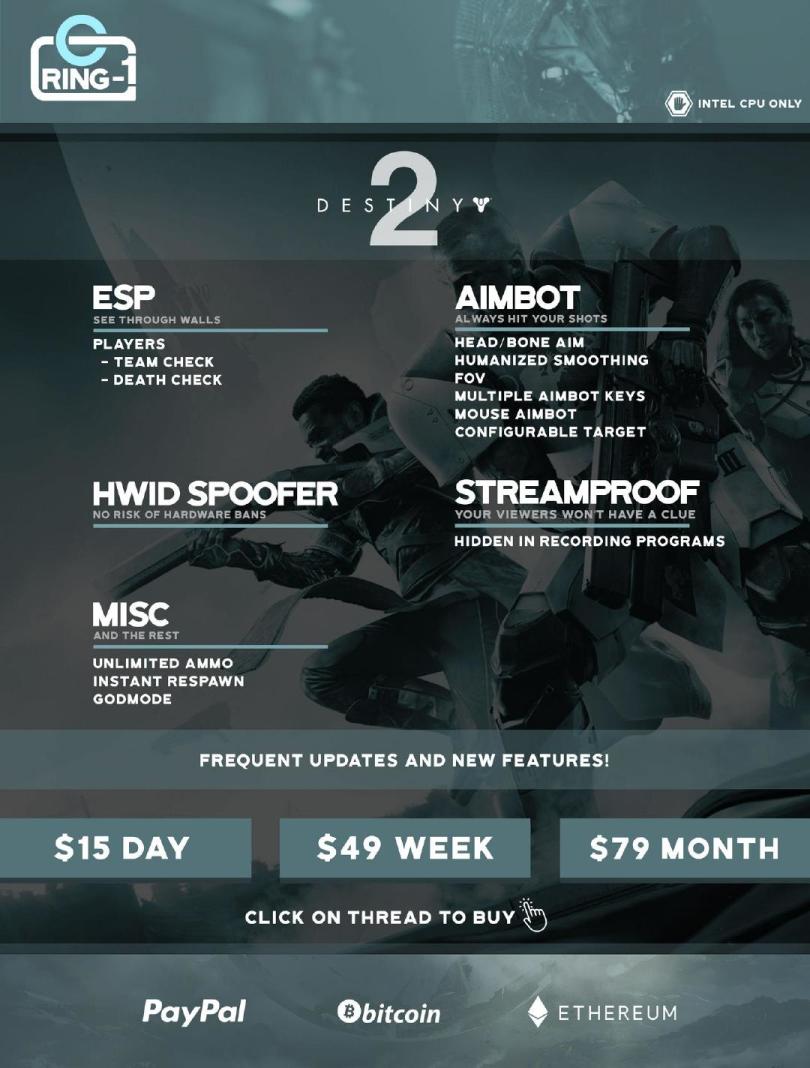 11.近日国外一家名为“Ring-1”的外挂、作弊器售卖网站遭到Bungie和育碧的联名起诉,该网站主要销售《彩虹六号:围攻》、《命运2》《腐蚀》等多款FPS游戏的作弊软件,Bungie和育碧要求其关站并且赔偿数十万美元。Ring-1上的作弊软件售价高昂,比如说《命运2》作弊器,每周作弊玩家需要花费49美元或是每个月79美元的费用。该诉讼目前提及的被告都为网络虚拟名称,Bungie和育碧打算在两家公司能够追踪到这些人的真实身份再次修改诉讼。