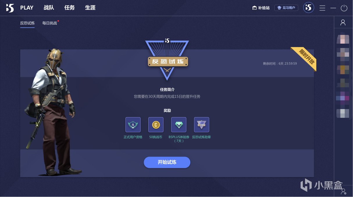 -老用户也可以领取反恐试炼任务,完成后同样获得7天B5 PLUS会员