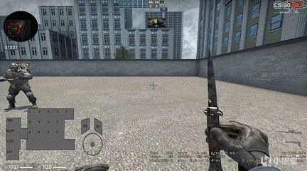 顺便一提,蹲下的扫射可以达到一边移动一边准星仅小范围扩散的效果,像这样: