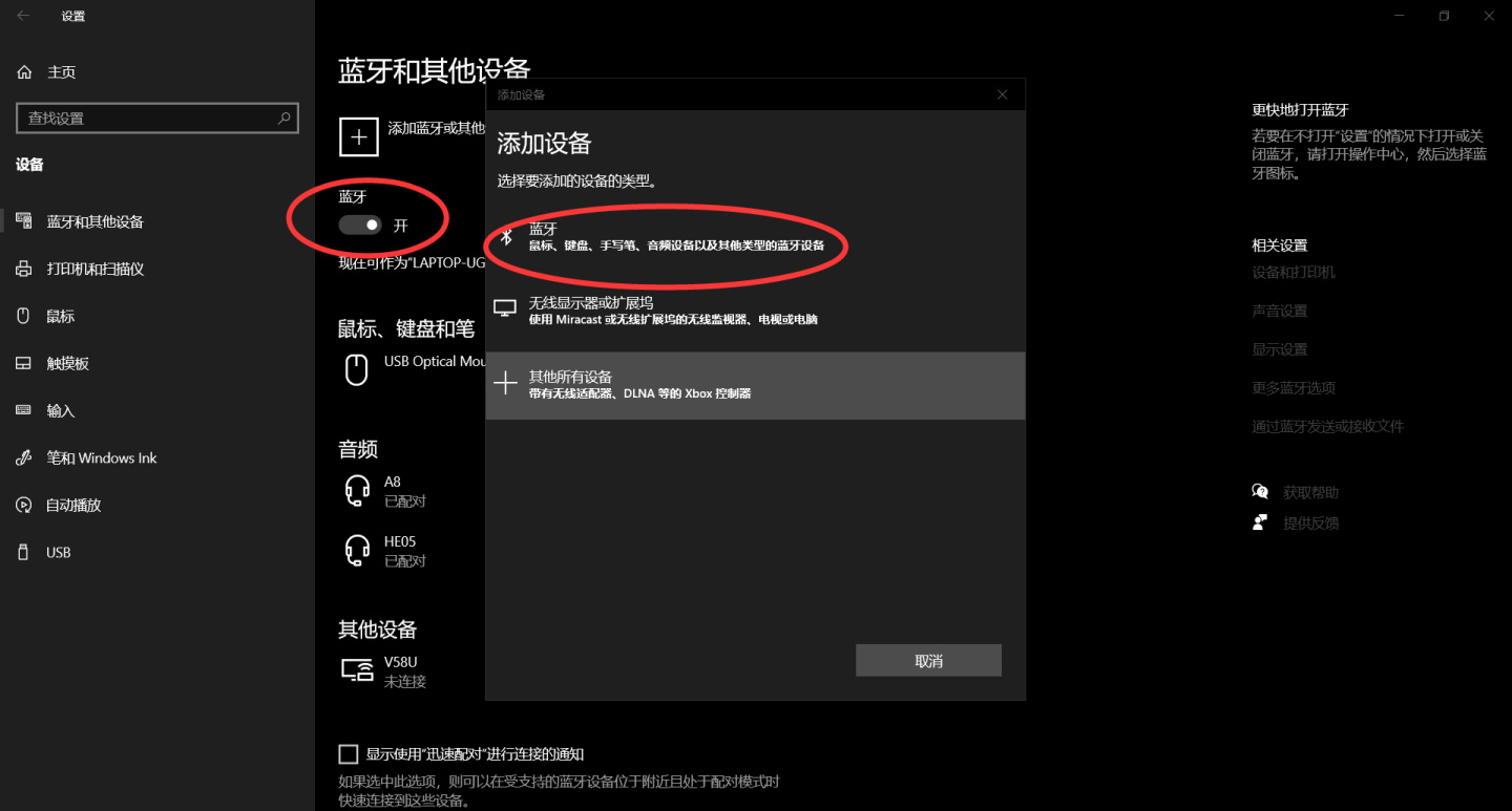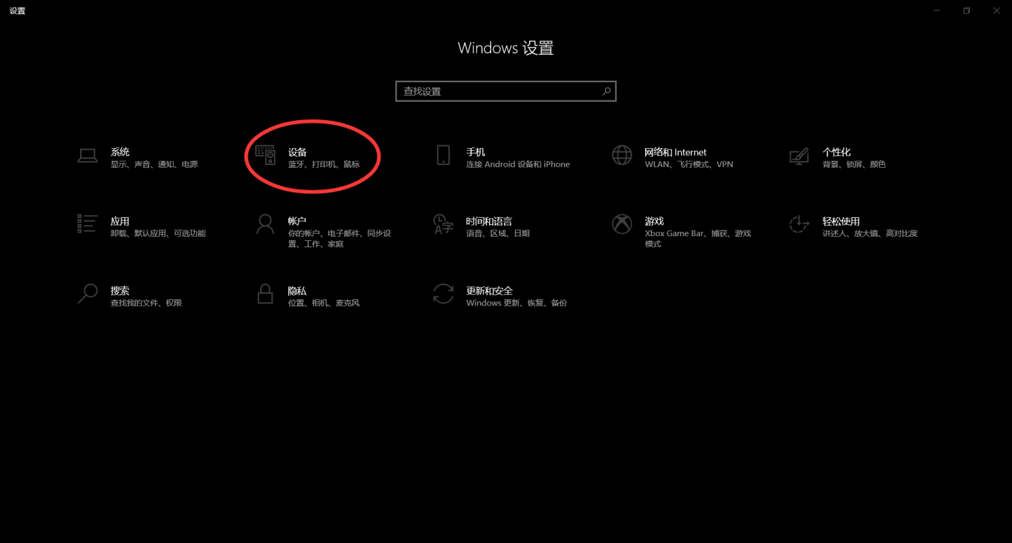 首先分别同时长按PS4手柄的share键和PS键,当PS4手柄闪烁淡蓝色光则代表蓝牙开启,接着我们在PC的控制面板/设置中找到设备