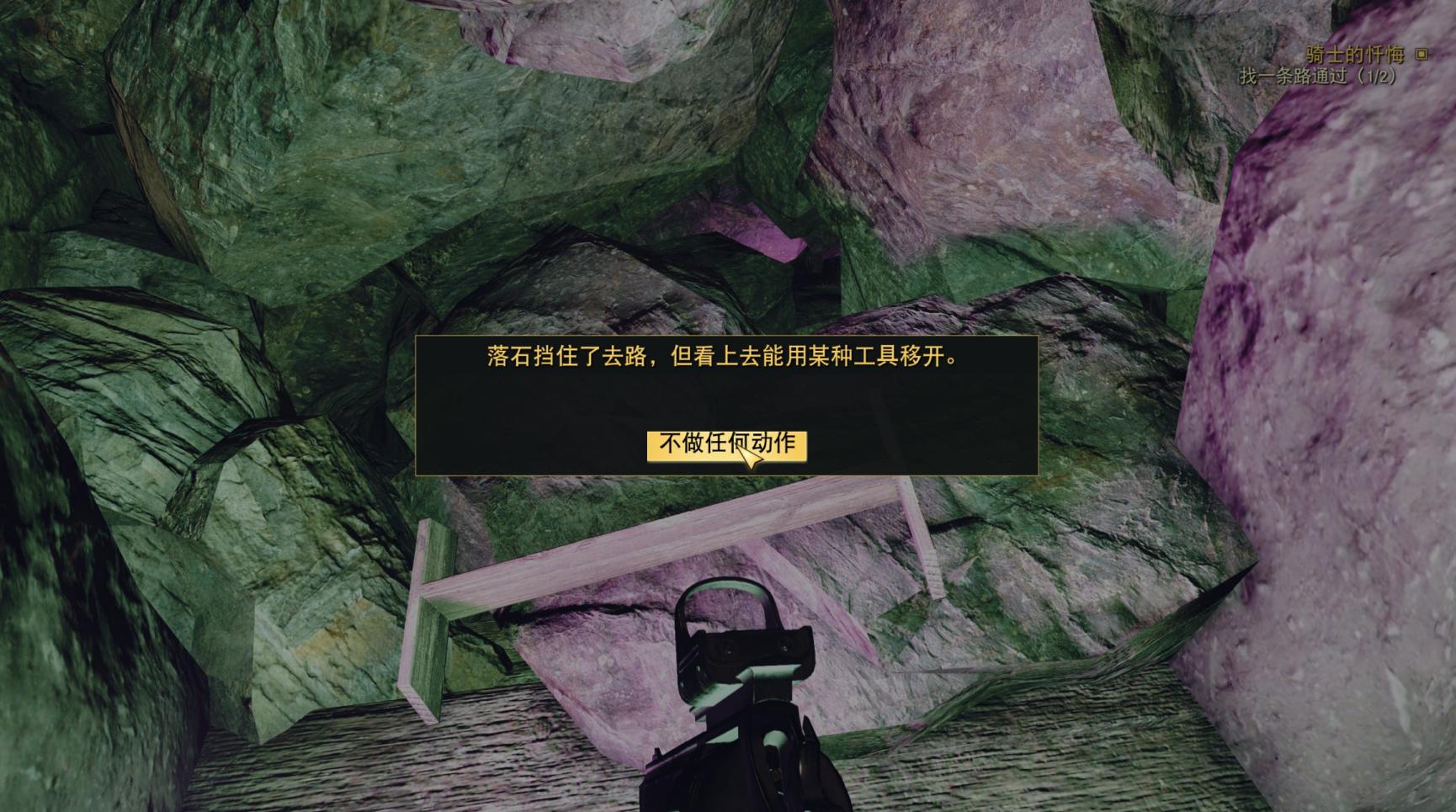 洞穴是类似于传统世界中的矿坑样式的,里面除了一些动物便什么也找不到了,这不禁让人感到奇怪,再向前进,便会发现主干道被坍塌的巨石掩埋住了。
