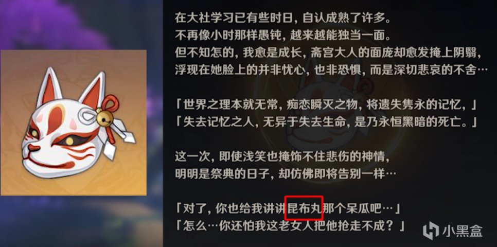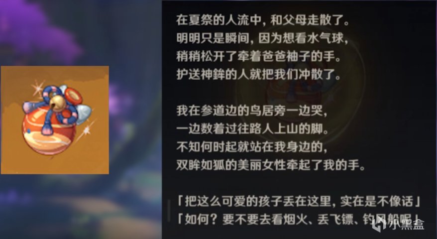 这套圣遗物讲的就是狐斋宫戴着面具参加祭典与一名孩子相遇的故事
