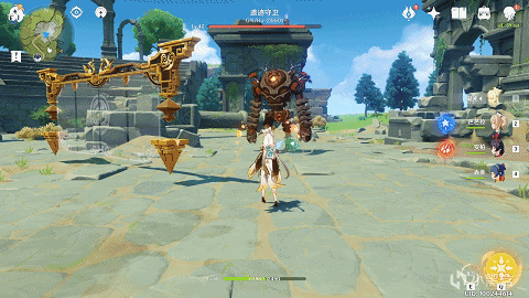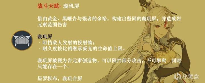 璇玑屏中央的位置有重量,可以用来解锁某些需要东西压住的机关(但因为同时只能存在一个,所以遇到要踩3个台子的时候还是得用岩主)。注意璇玑屏不能像岩主的陨星那样长按选择落地位置,所以需要璇玑屏打输出的时候可能要主动靠近怪。