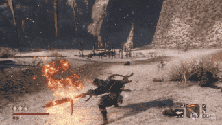 我们再来看敌人对突刺的弹反,只狼中突刺是无法防御的,只能够弹反