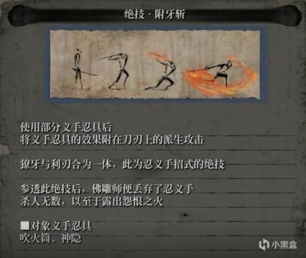 附牙斩就是将忍义手的效果附魔到楔丸上,使右手系统的楔丸招式具有忍义手的部分功能