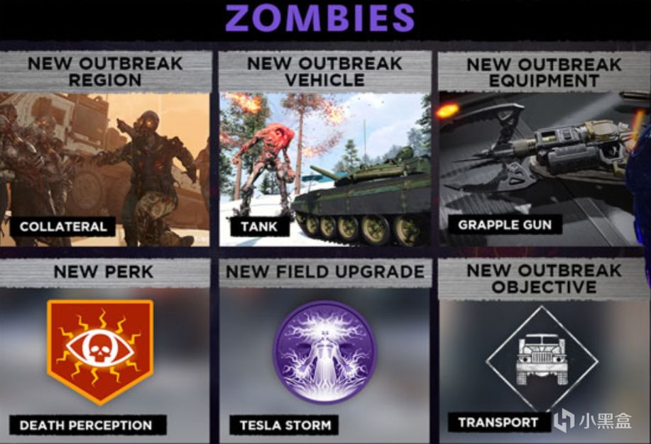 僵尸内容:死亡感知、特斯拉风暴、误袭、坦克、抓钩发射器、运输、魔鬼山