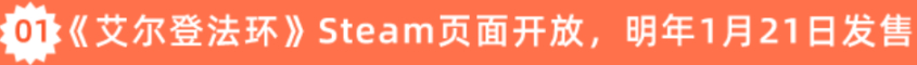 - 由FS制作类魂RPG游戏《艾尔登法环》Steam页面今日正式开放,Steam页面显示该作将于明年1月21日正式发售,游戏显示支持繁简中文,将于明年1月21日正式发售。