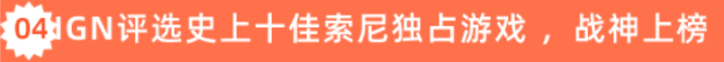 8月5日,IGN评选了索尼史上独占游戏TOP10榜单。此次的评选规则为上榜游戏均来自索尼第一方工作室的游戏,或者是后续收购的工作室,所以一些第三方制作的游戏——如《最终幻想7》、《合金装备》、《血源》和《恶魔之魂》等不包括在内。另外每个游戏IP只能上榜一款游戏,因此评选榜单中不会出现同一个IP中出现多部作品。