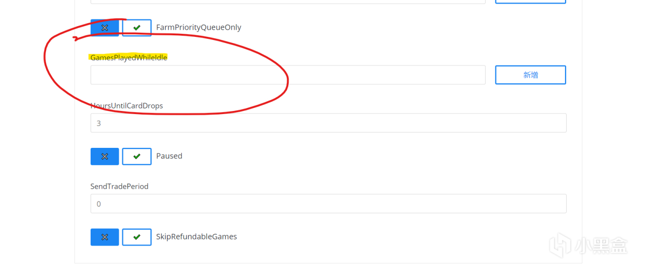 4.翻到最下面,在GamesPlayedWhileIdle一栏输入游戏id