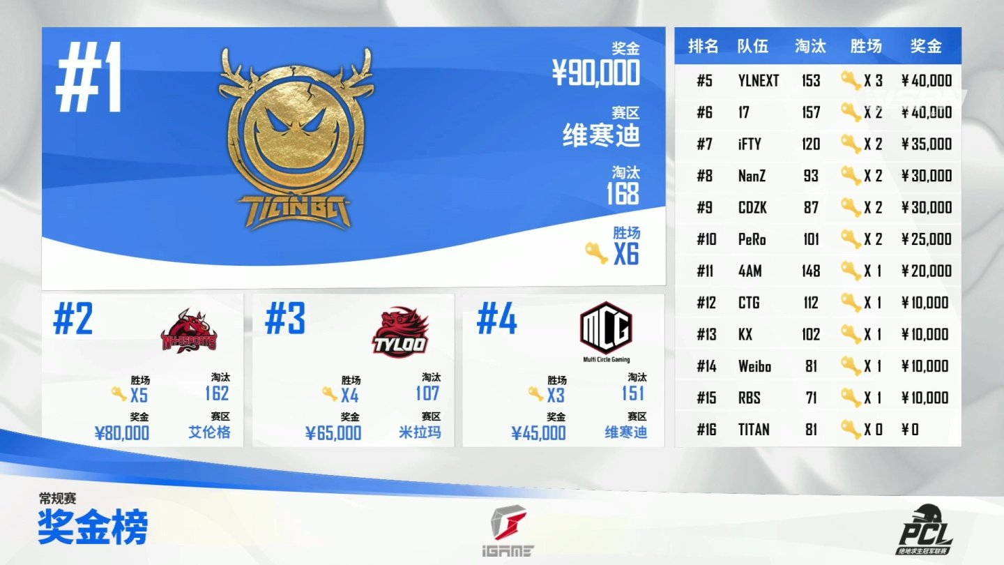 2021pcl夏季赛第三周已结束,各战队奖金如夏季赛积分榜: