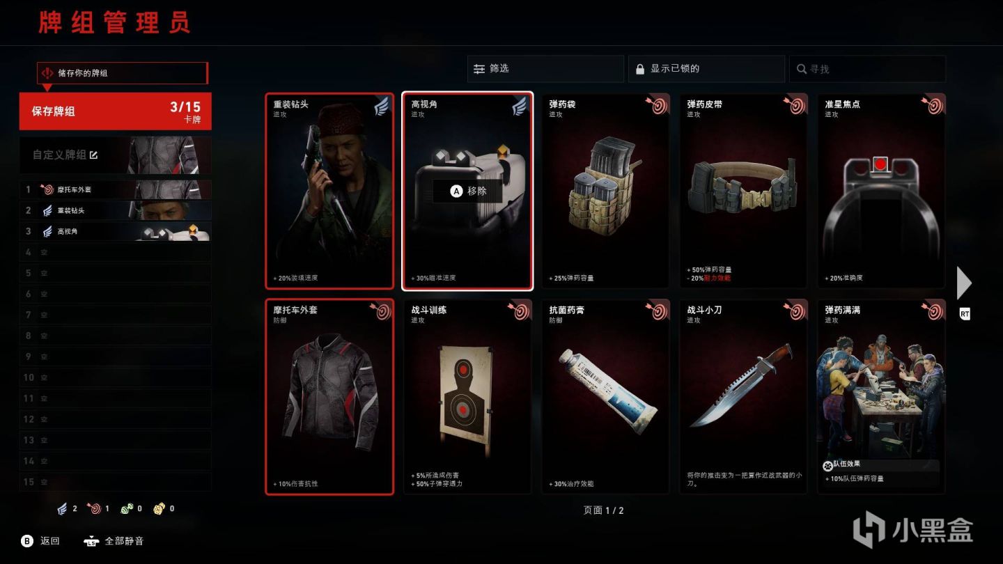 《喋血复仇》的卡牌系统允许玩家自由组合一组最多15张卡牌的牌组,卡牌的本质是给玩家的角色或小队增加BUFF,提高生存概率。其中如“低生命值时杀敌可增加血量”、“增加20%耐力”、“增加医药柜治疗效果”、“自动侦测附近的铜币”等都非常实用。结合此前提到的工具箱才能打开的补给房间,可见本作还加入了一些肉鸽元素。