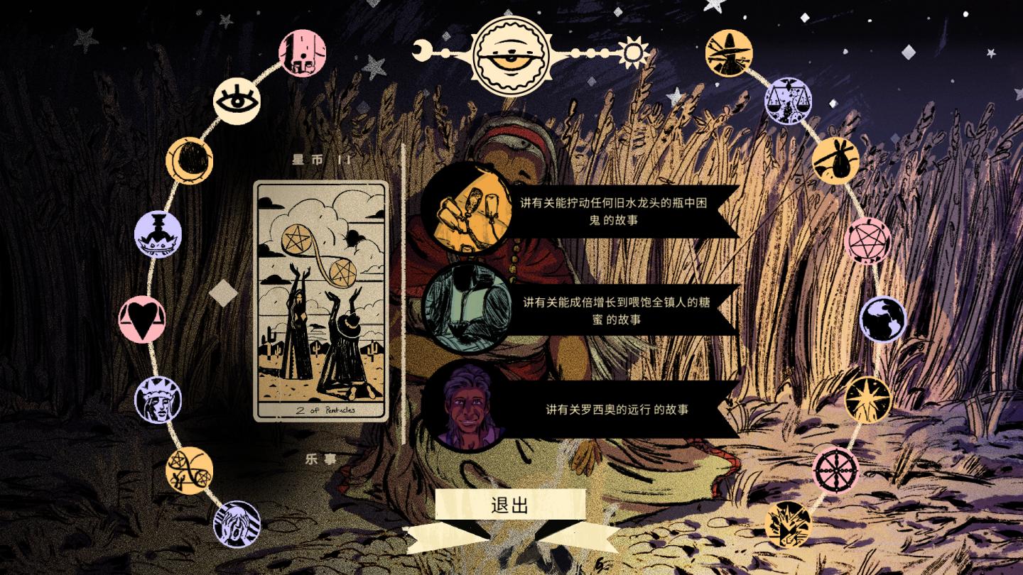 既然是聊天,那自然就要讲故事。而从某种意义上来说,本作其实有些集换式卡牌的味道(并不是因为故事按照塔罗牌分类),你在路上搜集到的各种故事便是类似卡牌的存在,而这16位旅人便是你要用卡牌打的比赛——他们每个人需求的故事都各不相同,而故事的不同主题则会引导接下来的对话走向。