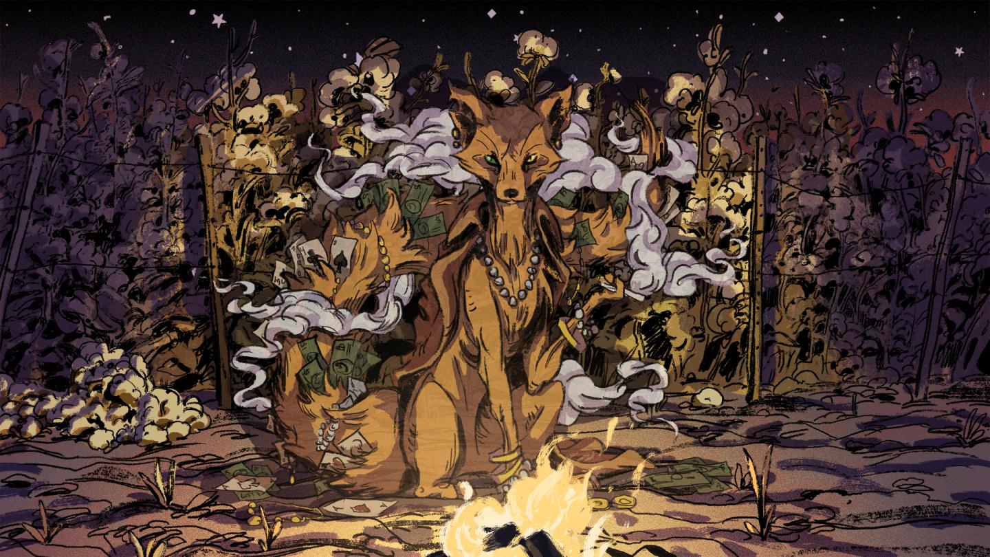 任何事情都是事出有因的,你在和恶魔狗头人的赌局中输掉了灵魂,而作为赌博的代价,狗头人提出了一个听上去有些奇怪的要求:他要你踏遍整个美国,在这片“水如蜜酒之地”中收集到各种各样的故事,并把它们传播出去。于是你——一具瘦巴巴的骨头架子,就这样踏上了收集与讲述故事的旅程。