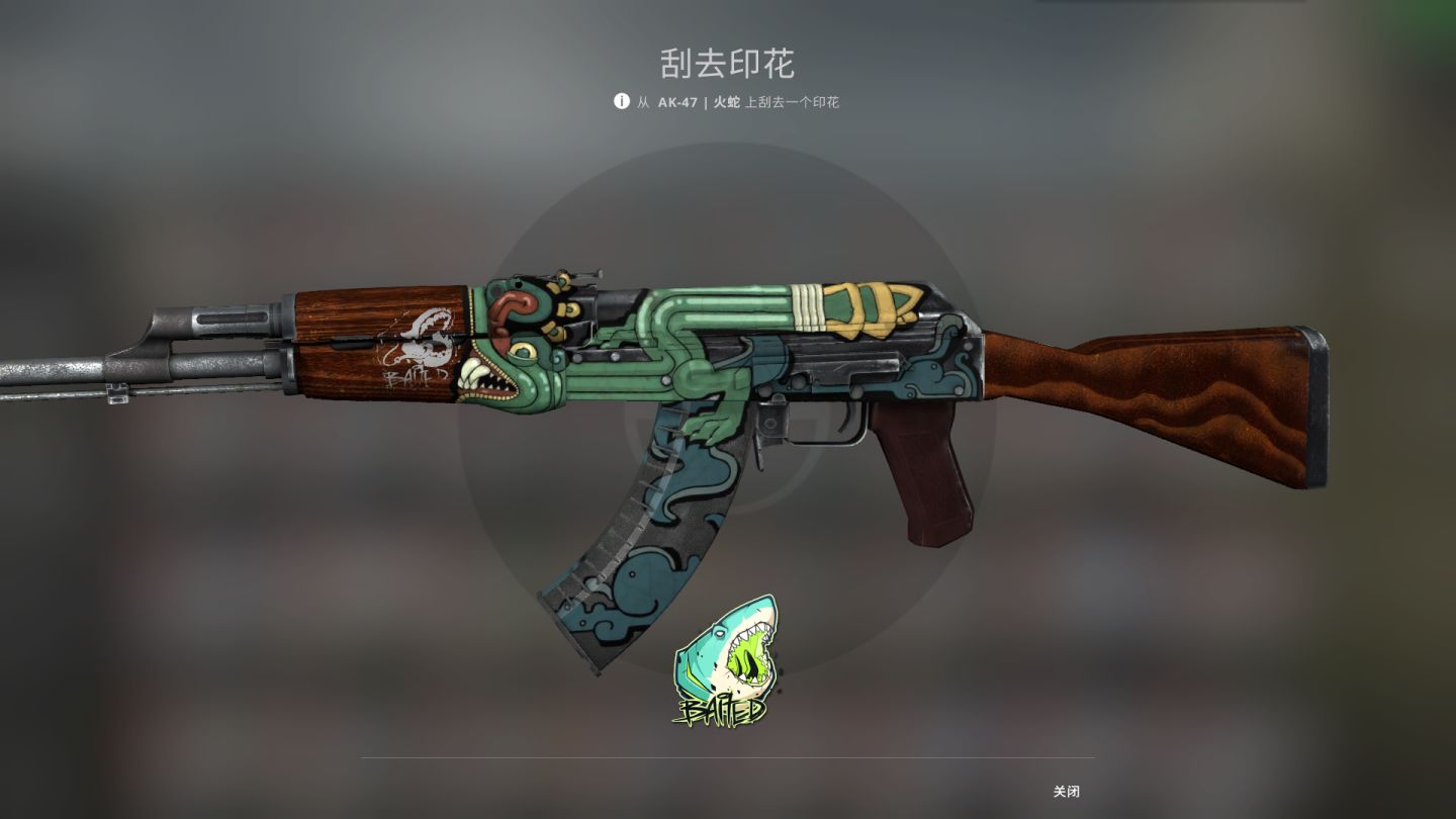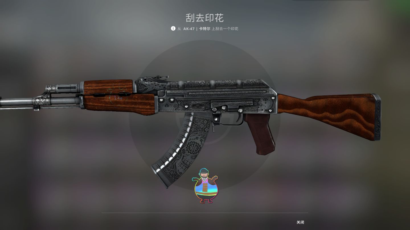 刮过之后,四周的背景和多余部分消失,长带上的“GUARDIAN”消失,但是带子上出现了新的字样“AK47”,与保留的“MASTER”组合起来意思就是“AK大师”