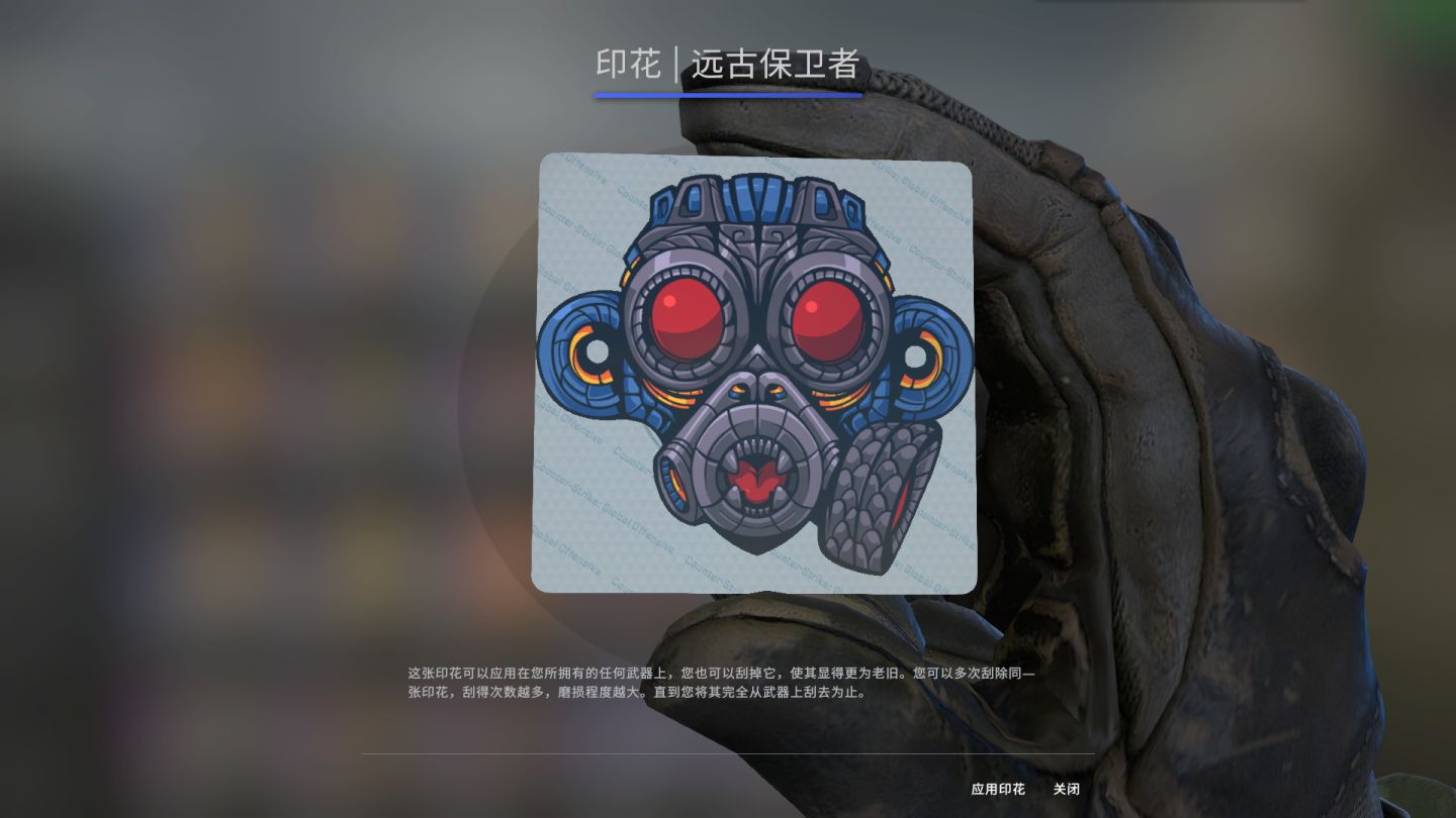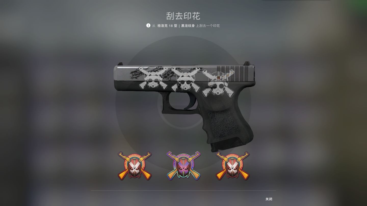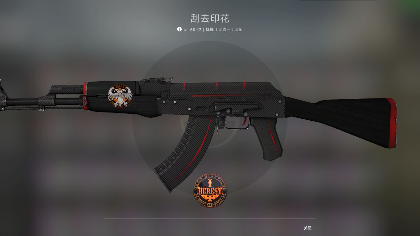 全息和普通版本刮过之后效果一样,重甲面具变成了CT探员的防毒面具,后面交叉的AK47变成了M4A4