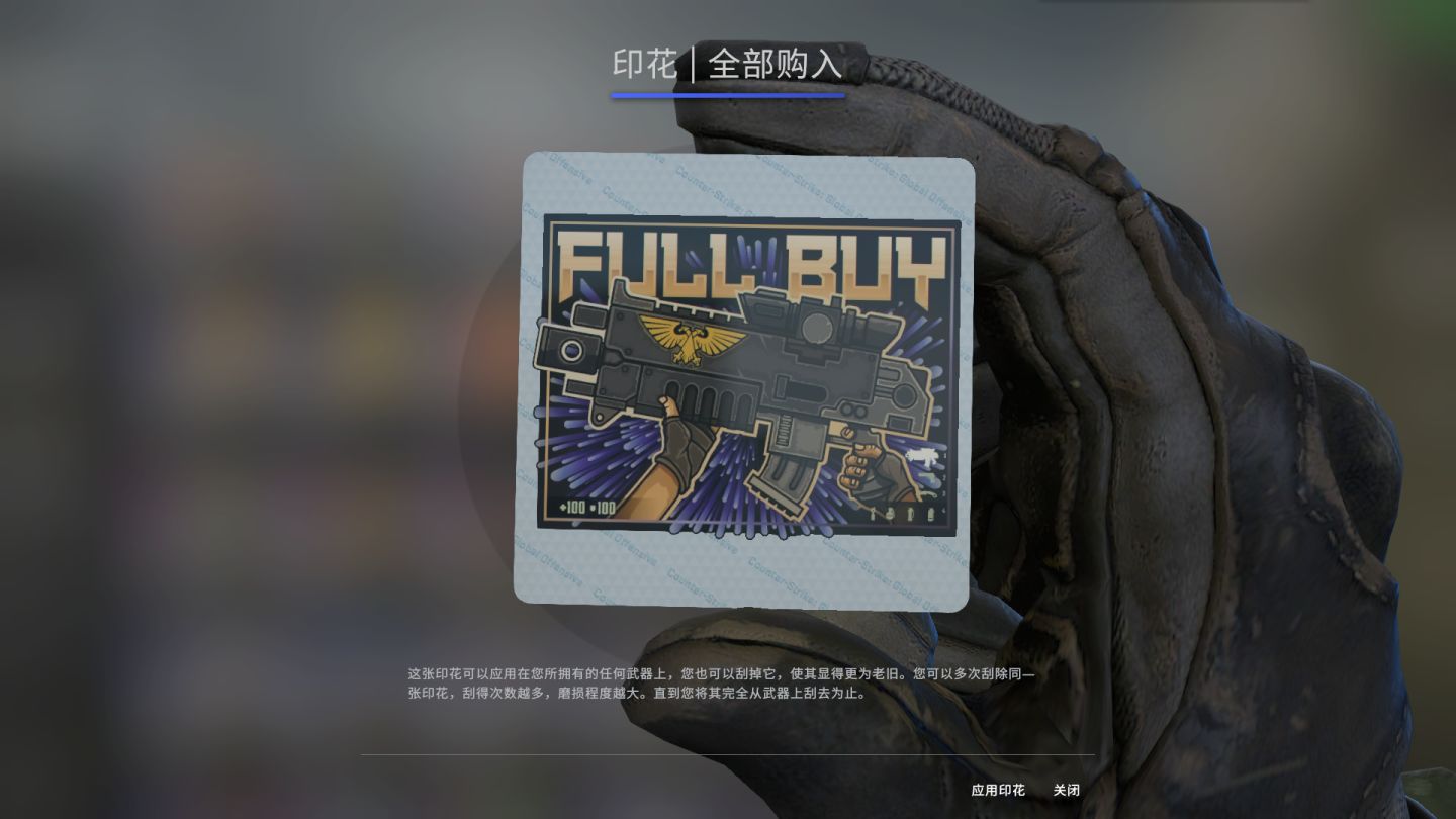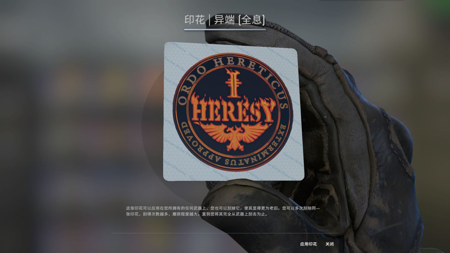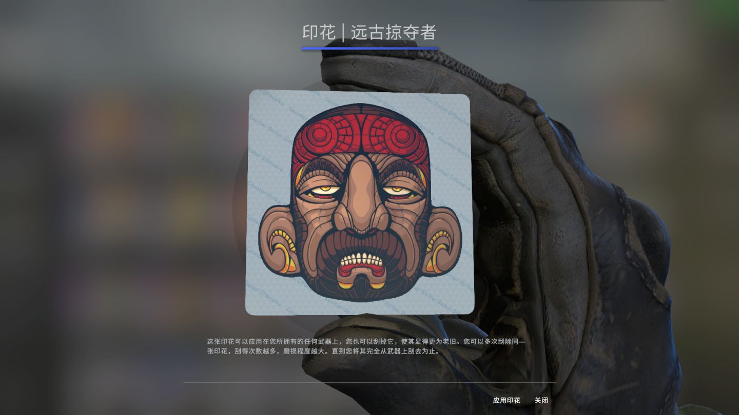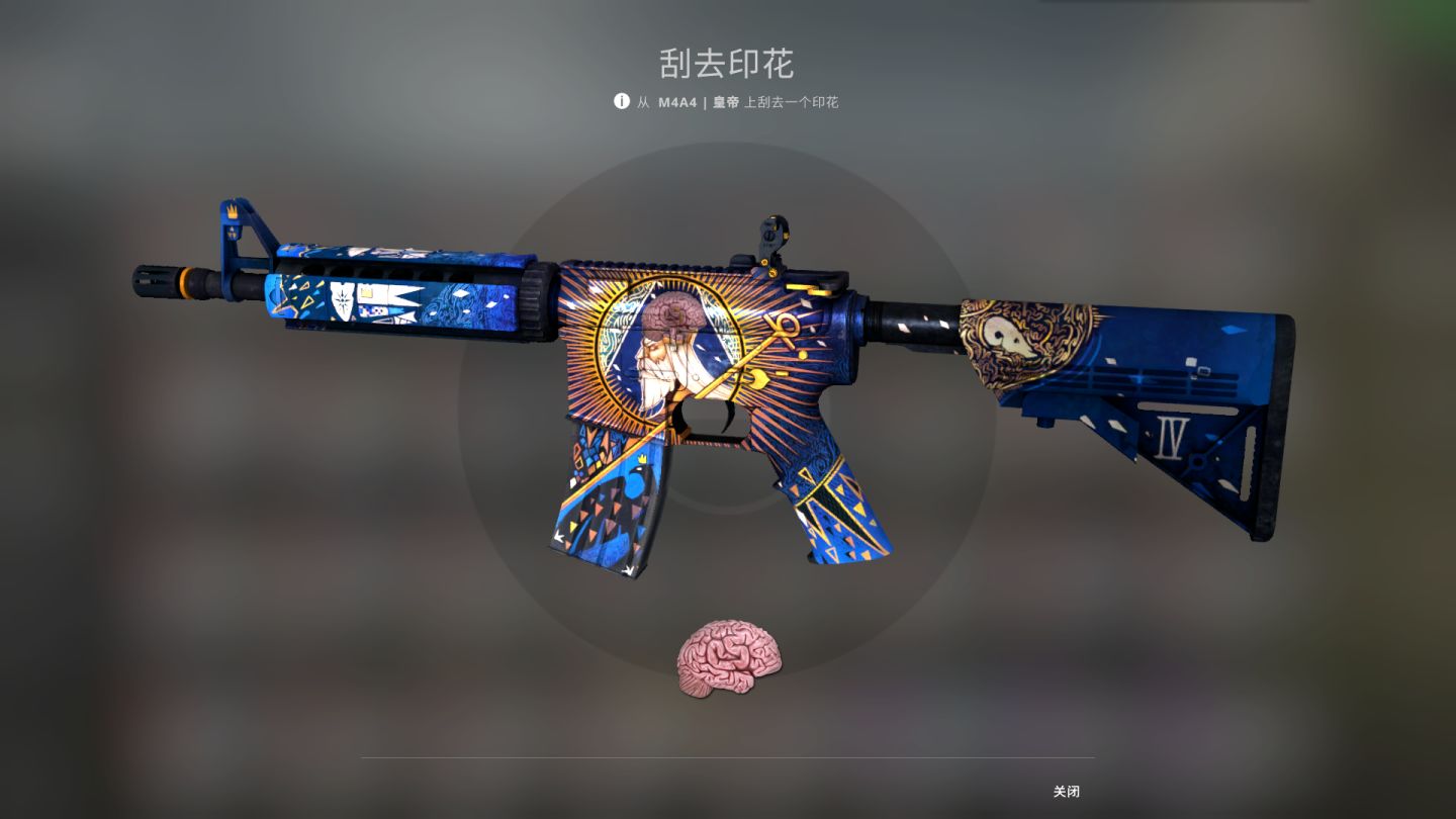 全息和普通版本刮过之后效果一样,重甲面具变成了CT探员的防毒面具,后面交叉的AK47变成了M4A4