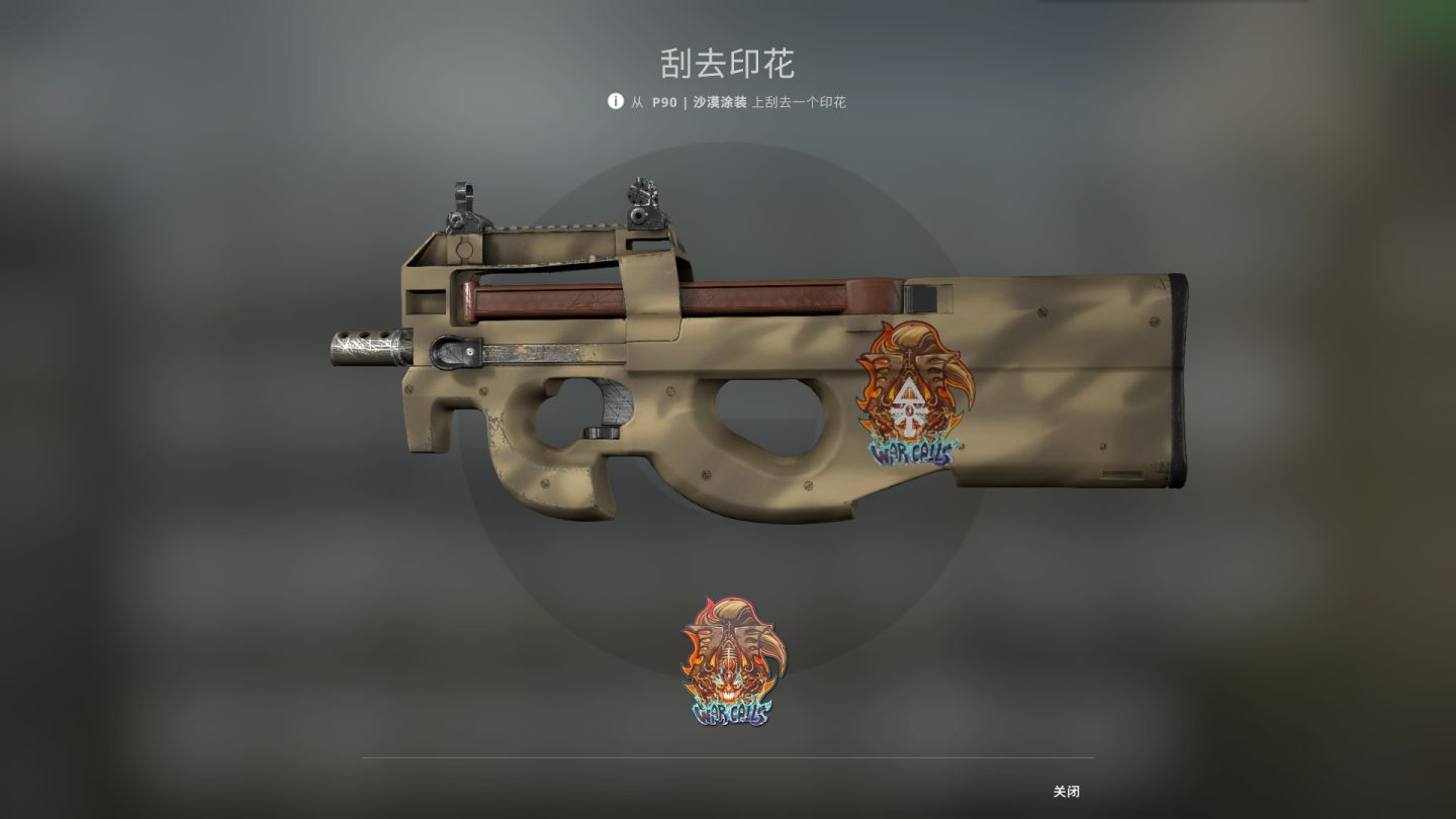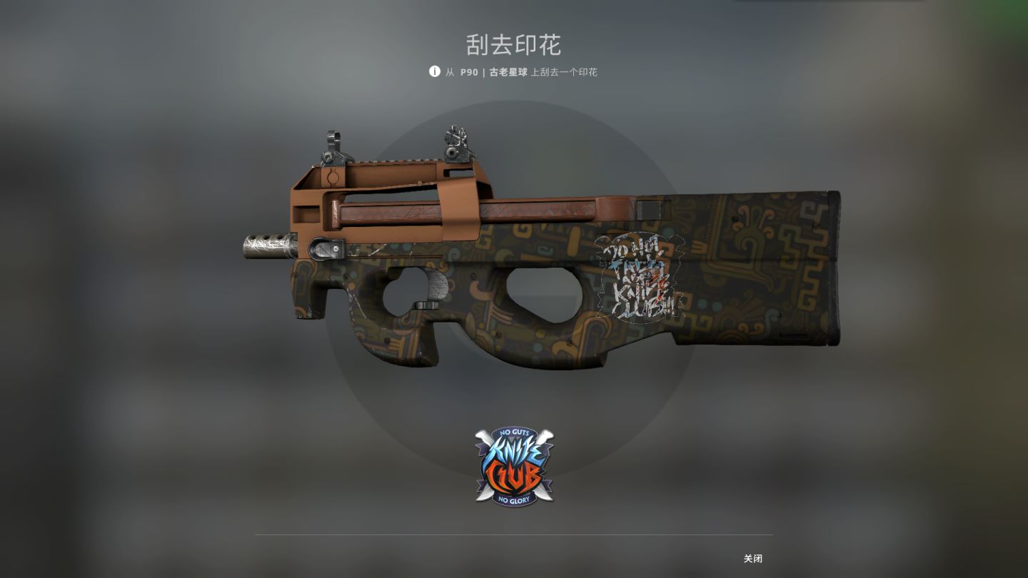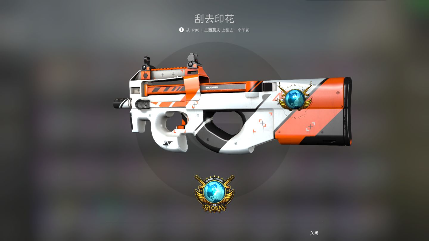 刮过印花后,大地球中央出现了吉祥物小鸡,两把交叉的AK47变成了两把P90,“THE”变成了“NOPE”, 下方的“GLOBAL”则被划上了一个大X。