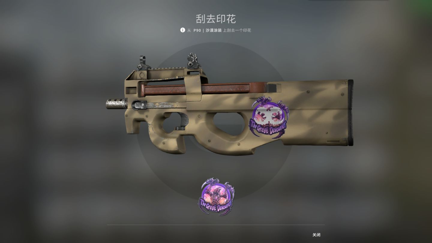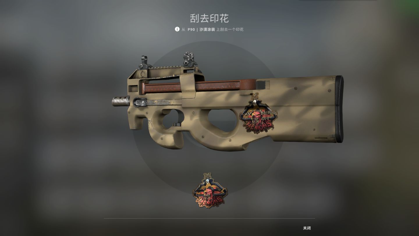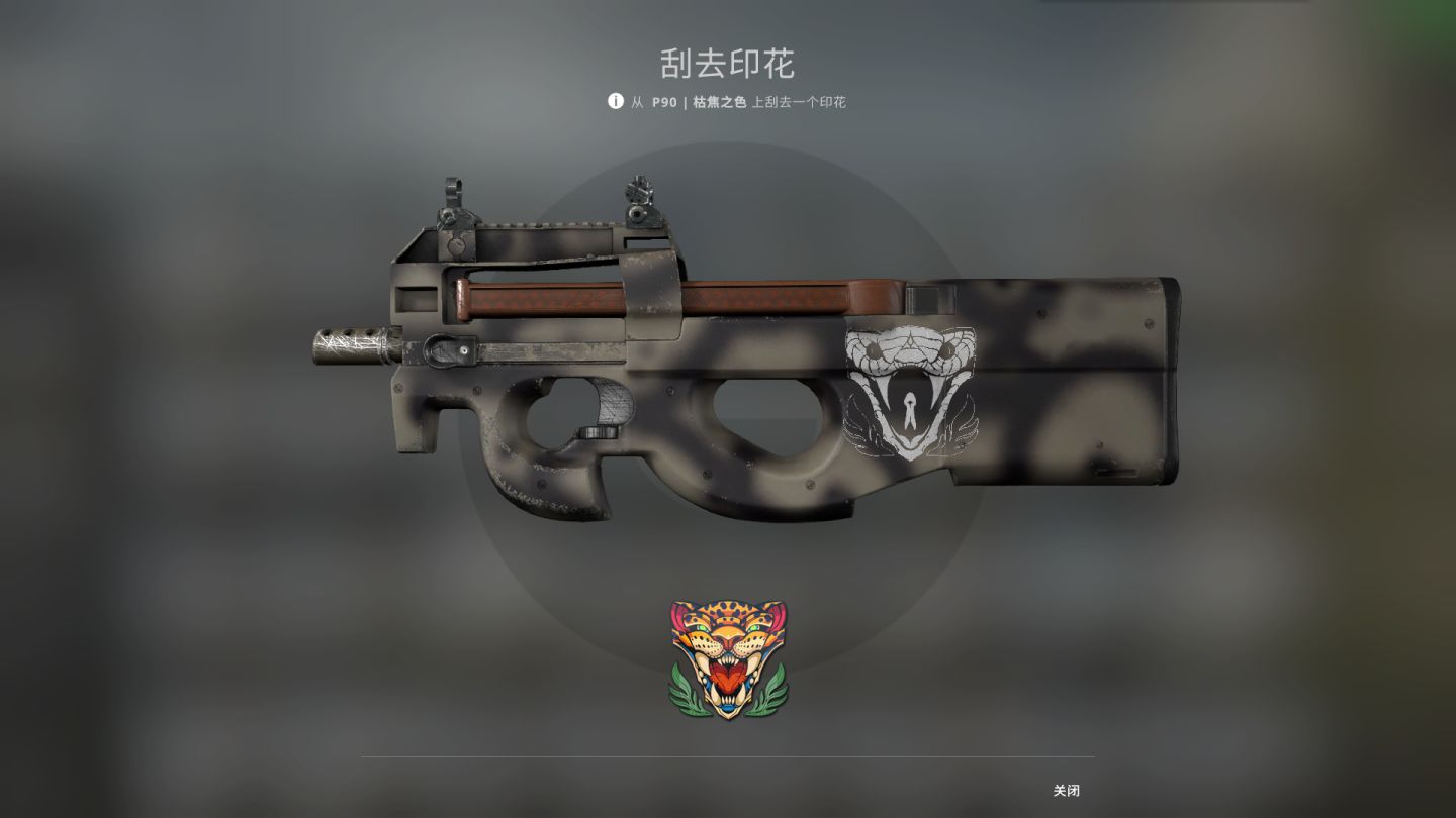 刮过印花后,大地球中央出现了吉祥物小鸡,两把交叉的AK47变成了两把P90,“THE”变成了“NOPE”, 下方的“GLOBAL”则被划上了一个大X。